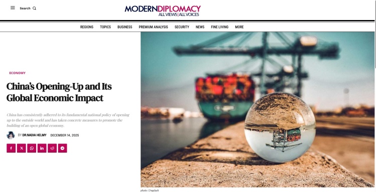 近日,知名期刊《现代外交》(Modern Diplomacy)网站发表了一篇观点文章,高度评价中国始...