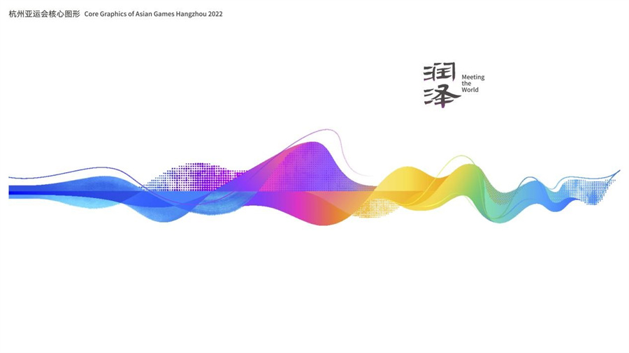 又如杭州亚运会核心图形“润泽”,以杭州代表性文化元素——丝绸为灵感,灵动飘逸的丝绸之线和曲折秀美的山水之线相互交织,徐徐展开一卷富有江南韵味和东方诗意的“新富春山居图”,展现杭州的独特气质和深厚的中华文化韵味。