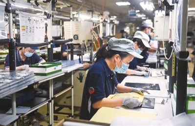 近期,中国(浙江)自贸试验区杭州片区杭州综合保税区内的“数字综保”综合服务平台正式启用。该平台打通20多套业务系统,解决了外贸企业通关耗时长成本高、业务拓展难、信息不对称等问题。图为杭州综合保税区一家外贸企业的工人在流水线上作业。