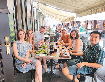 杨震(右一)与斯洛文尼亚课题组同事聚餐。