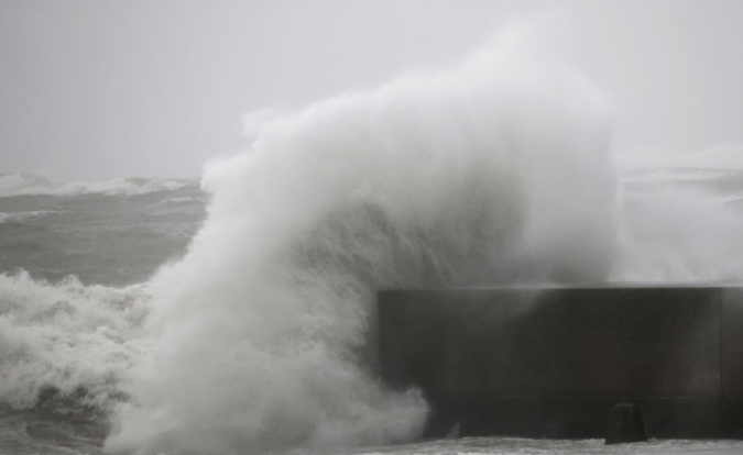 受超强台风“南玛都”影响,宫崎市的海边掀起大浪。(图源:日本共同社)