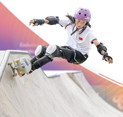 9月26日,滑板项目女子街式决赛,中国代表团选手崔宸曦在比赛中。本报记者 张武军摄