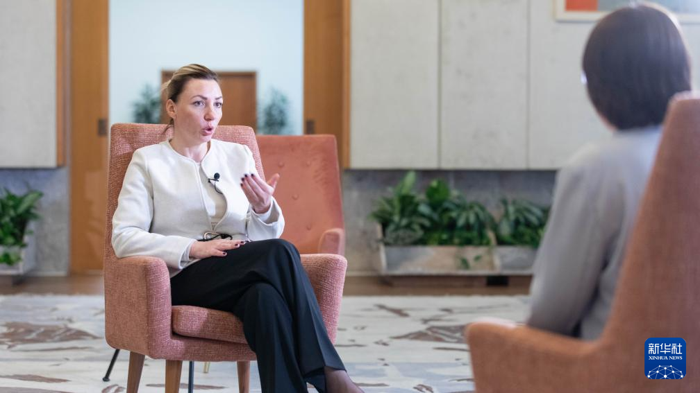 10月2日,塞尔维亚负责性别平等、防止针对妇女的暴力以及妇女经济和政治赋权事务的不管部长塔季扬娜·马楚拉在塞尔维亚首都贝尔格莱德接受新华社记者专访。新华社发(王韡摄)