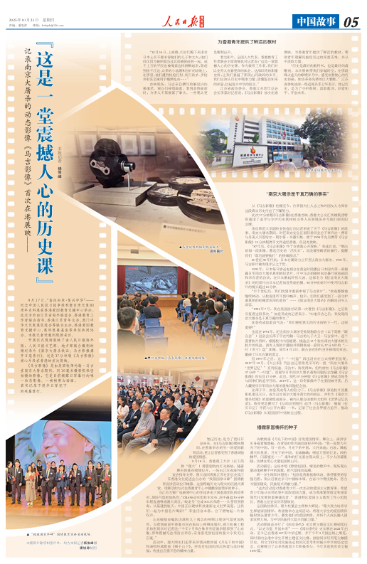 江苏省政协委员、香港江苏青年总会会长李荔对记者说,《马吉影像》首次在港展映,为香港青年提供了鲜活的教材,帮助青年理解民族经历过的深重苦难,并从中汲取力量。