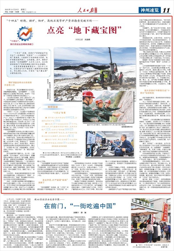 “十四五”时期,我国矿产资源勘查开发交出了一份亮眼的“成绩单”——从深邃地下到广袤高原,从能源矿产到战略新兴资源,找矿突破如春笋破土,生机勃勃。其中,横跨多省份的“亚洲锂腰带”尤为引人注目,成为我国战略性矿产资源保障能力提升的生动缩影。