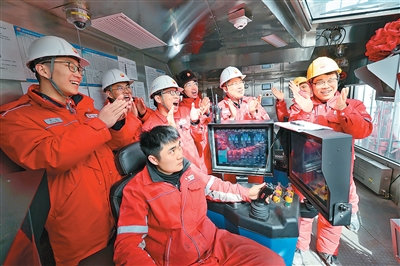 今年初,中国石油深地塔科1井钻探深度突破1万米时,司钻房内的技术人员激动地欢呼,鼓掌庆祝。
