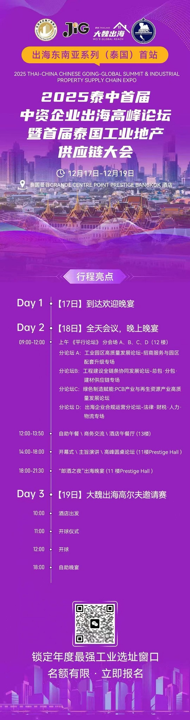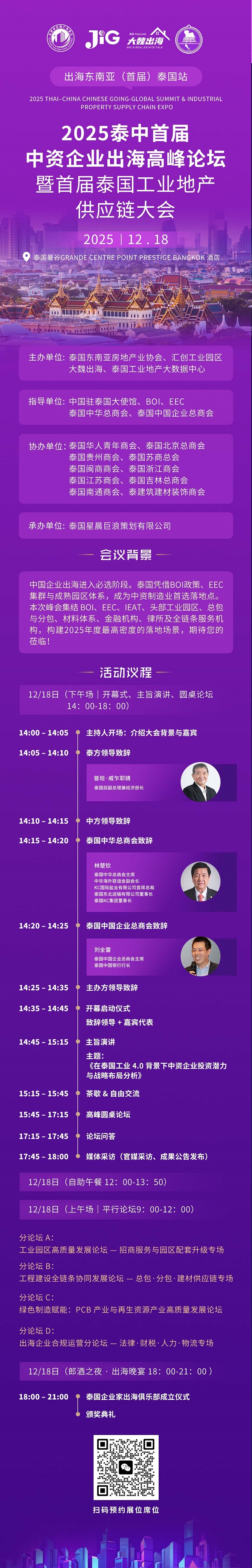 未经允许不得转载:综合资讯 » 2025年12月18泰中首届中资企业出海高峰论坛暨首届泰国工业地产供应链大会