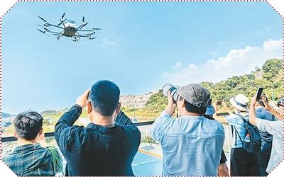 海外华文媒体代表在广东珠海桂山岛无人机运营中心参观采访。