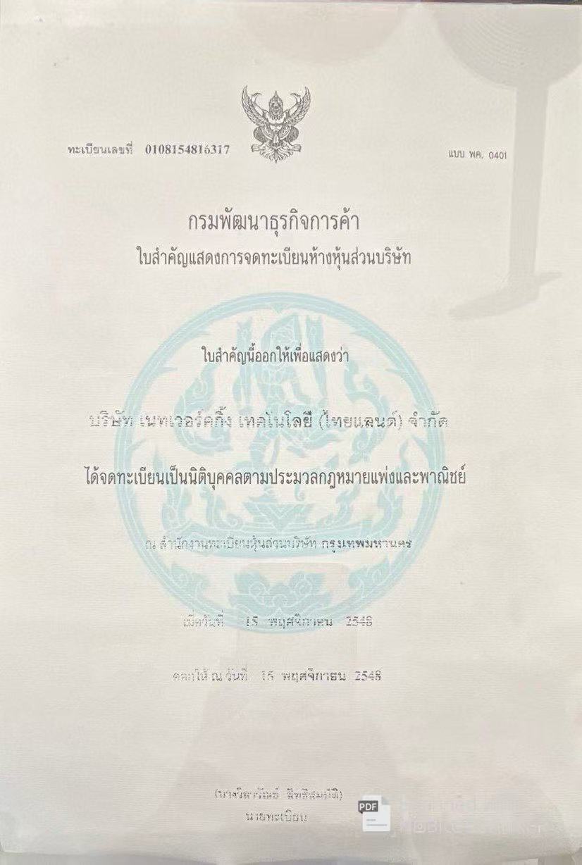 NETWORKING TECHNOLOGY (THAILAND) CO., LTD. 成立于泰历2548年 是一家领先的网络技术解决方案供应商,专注于为客户提供高效、可靠的网络基础设施及相关服务。我们致力于通过创新的技术和优质的客户服务,帮助各类企业实现数字化转型,提升运营效率。
