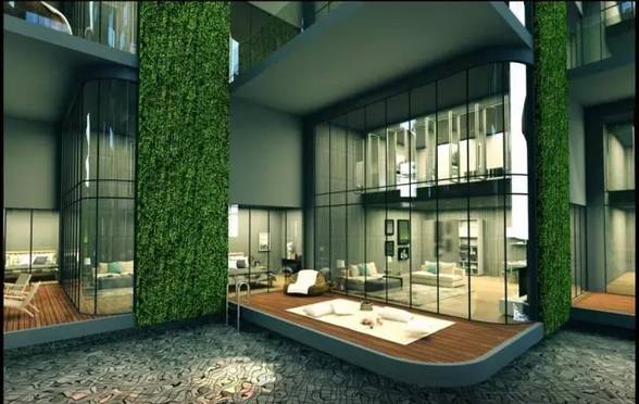 200%自动泊车系统自动泊车系统,每个单位门前有专属邮箱,一楼单位在阳台即可享受中庭泳池。天井自然采光,公寓众多绿植装饰。绝对的闹中取静的豪宅项目!