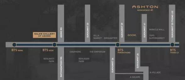 公寓距离BTS Phrom Phong 天铁站,Emdistrict高尚购物中心和宁静的Benjasiri公园仅仅650米。Emdistrict购物中心,是曼谷街知巷间的大型购物娱乐中心,在这不单能买到日常生活所需,更能找到所有世界知名的名牌商品。同时公寓周围有Emquartier商城,J-Avenue购物中心,Rain Hill 购物中心,以及Samitive医院。