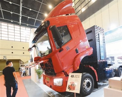 近日,观众在郑州国际会展中心参观展出的一款氢燃料电池牵引车。 张 涛摄(人民视觉) 随着新能源汽车...