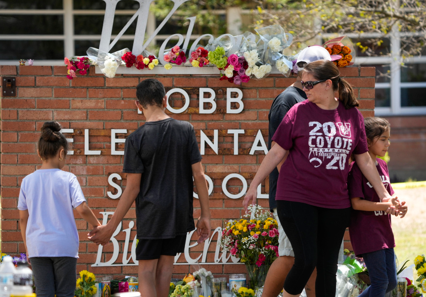 美国得克萨斯州乌瓦尔德市一小学发生枪击案,民众前往现场献花悼念。(资料图) 海外网8月29日电&nb...