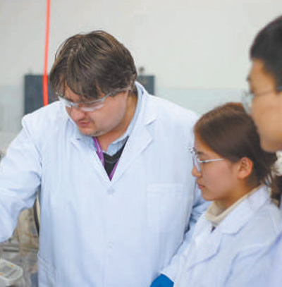 裴武烈在组织员工开项目推进协调会议。 金成学摄 莫帕教授指导研究生做实验。 受访者供图 大卫在学校阅...