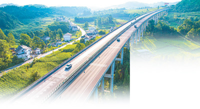 图为经过贵州省黔西市绿化白族彝族乡大海子村的贵黔高速,“大通途”为乡村振兴打开“快车道”。周训超摄(...