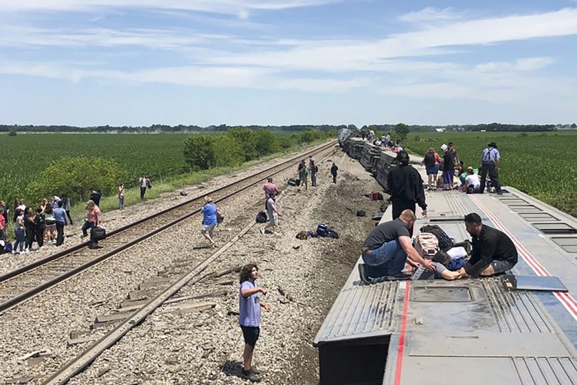 美国一列车在密苏里州与卡车相撞后脱轨。(现场图) 海外网6月28日电 当地时间6月27日,...